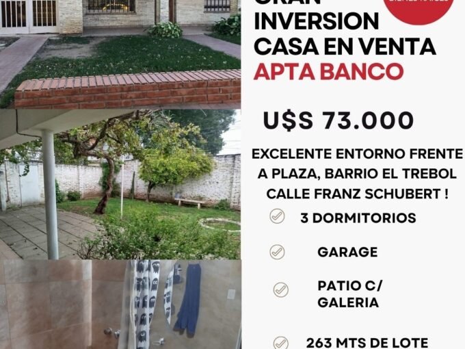 GRAN INVERSION CASA EN VENTA ,APTA BANCO!